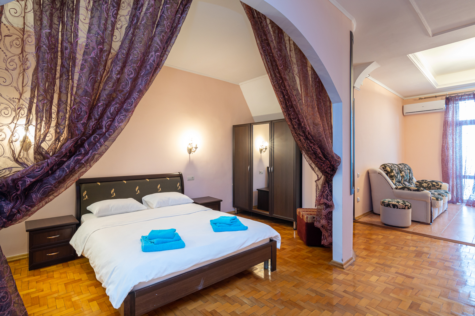 Оборудование: кондиционер, телевизор, холодильник. Санузел: с ванной, туалетные принадлежности, фен. Сервис: Wi-Fi бесплатно, смена полотенец, смена постельного белья, уборка номера.